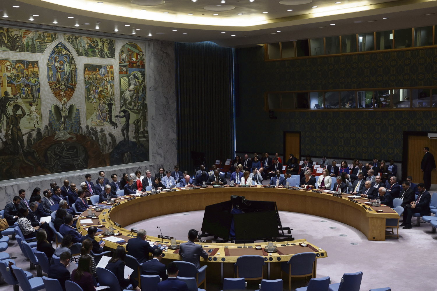 Members of the U.N. Security Council gather during a high-level meeting on the situation in Gaza, at U.N. headquarters in New York City, U.S., September 23, 2025. REUTERS/Shannon Stapleton